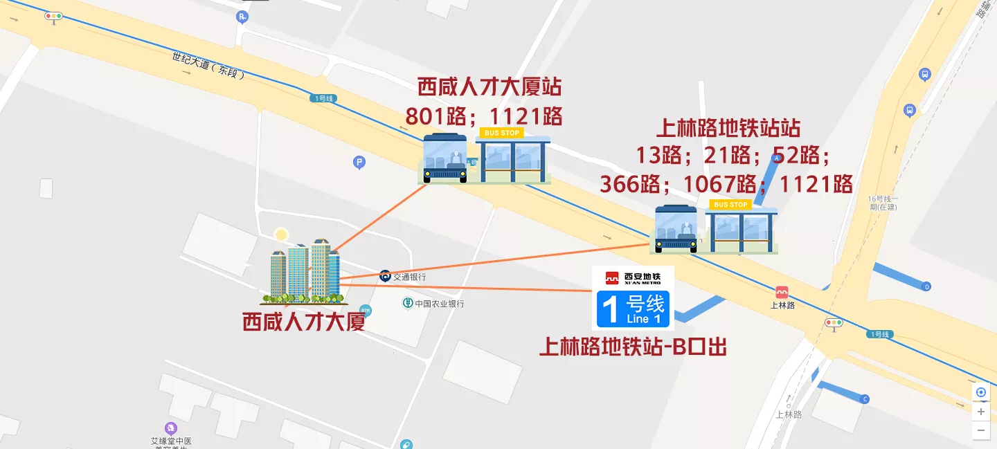 乘车路线:西安地铁1号线“上林路”站B口出即到,或导航搜索“西咸人才大厦”自驾、乘坐公共交通,均可直达